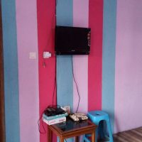 Kamar tidur di Homestay Azhalya didesain dengan tema warna-warni yang cerah, menciptakan suasana yang playful dan bersemangat, sangat cocok untuk keluarga muda atau rombongan teman. Kenyamanan istirahat Anda didukung oleh fasilitas Kipas Angin (Fan) dan Televisi layar datar di dalam kamar.