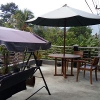 Salah satu keunggulan homestay ini adalah area teras atas (rooftop) yang luas dan terbuka, dilengkapi dengan ayunan santai dan payung taman. Ini adalah tempat favorit untuk menikmati pemandangan hijau perbukitan sekitar sambil bersantai di pagi atau sore hari.