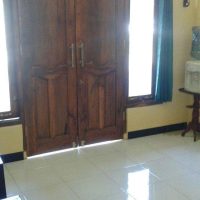 Bangunan homestay ini dirancang dengan langit-langit yang tinggi, menciptakan suasana ruangan yang sejuk dan luas. Terdapat teras depan dengan pintu kayu jati yang megah, serta teras belakang semi-terbuka yang asri, tempat yang sempurna untuk duduk santai sambil menikmati udara segar.